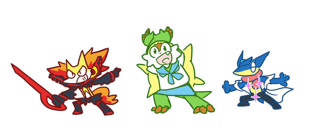 Pokemon Gen Vi Starters Fully Evolved As Kill La Kill Characters Delphox Ryuuko Chesnaught Mako Greninja Aikurou Pokemon Mario Characters Anime